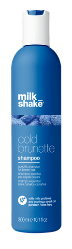 milk_shake kalt brunette sjampó er sérstakt sjampó fyrir brúnt hár. Hinir sérstöku bláu litarefni sem eru í nýju milk_shake kalt brunette línunni vinna gegn rauðum/appelsínugulum tónum í brúnu hári, fjarlægja óæskilega hlýja tóna og láta kaldar andlitsmeðferðir endast lengur. Það er tilvalið fyrir náttúrulegt eða litmeðhöndlað brúnt, ljósbrúnt eða dökkljóst hár.